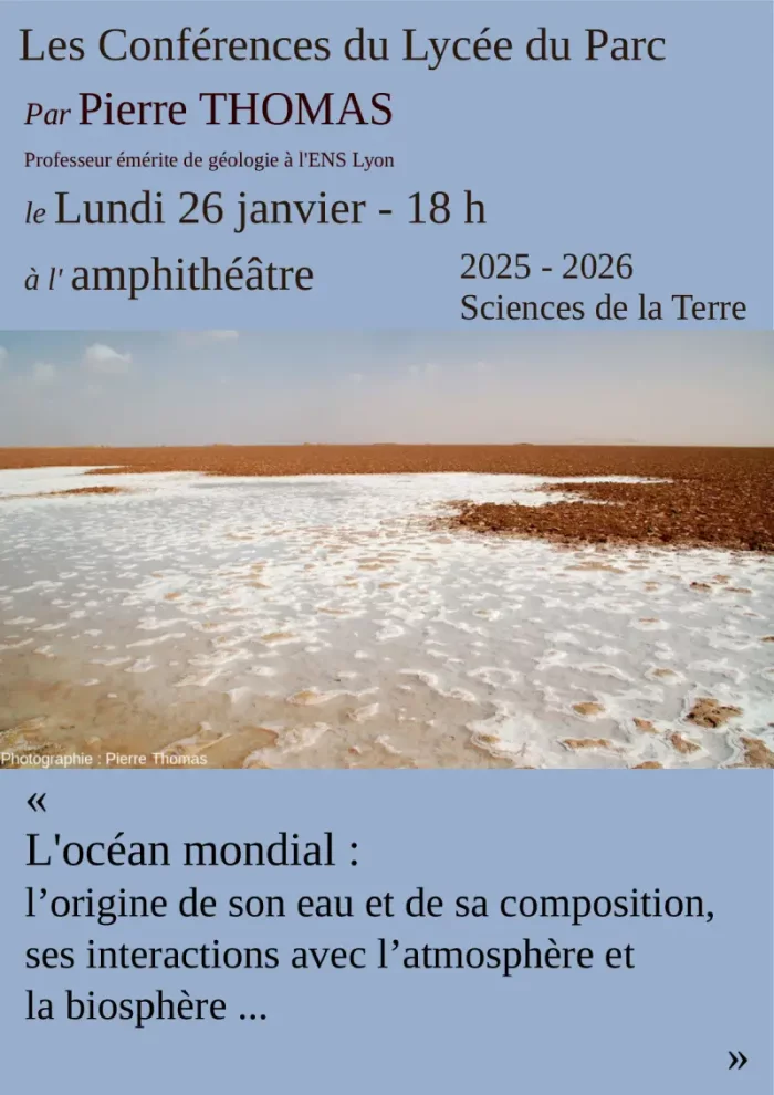 Elle sera donnée par : Pierre THOMAS, professeur émérite de géologie à l’ENS Lyon.