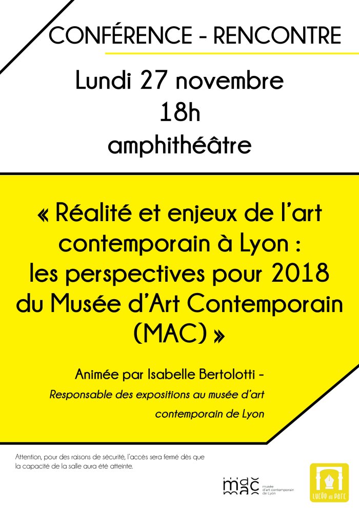 Accueil > CONFÉRENCES > Archives > Isabelle Bertolotti - « Réalité et enjeux de l’art contemporain à Lyon : (…)